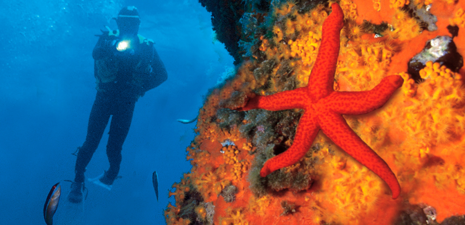 nós enxergamos recifes vibrantes, naufrágios cheios de história e uma biodiversidade fascinante.